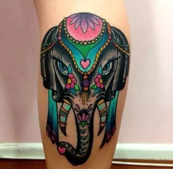 小腿上一款大象纹身图案_腿部纹身图案大全_纹身图吧