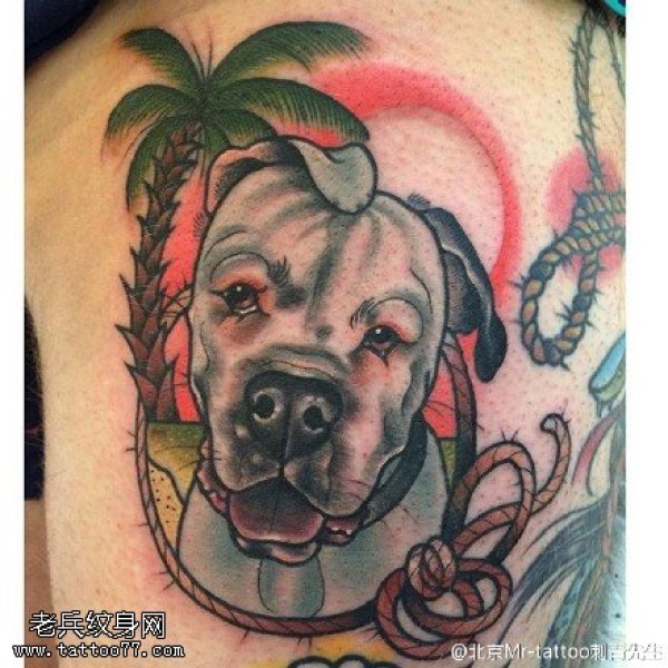 香蕉树下的小狗狗纹身图案