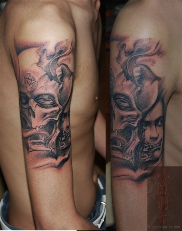 个性手臂悲伤的骷髅纹身图案图案图片_骷髅纹身图案大全_纹身图吧