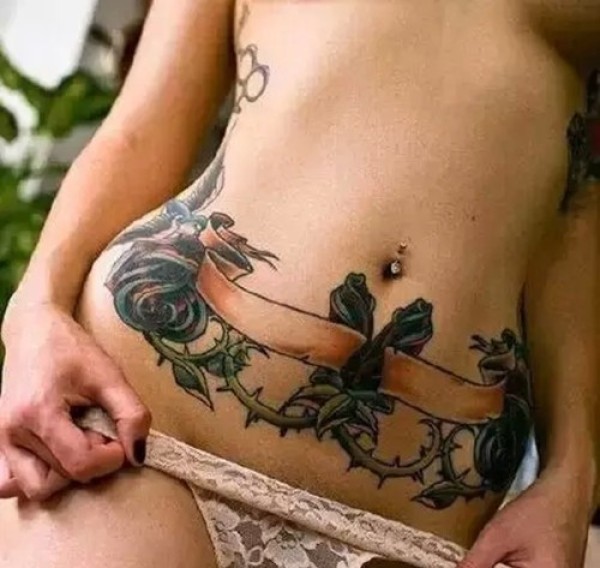 分享一款腰部时尚性感的蝶恋花纹身图案_腰部纹身图案大全_纹身图吧