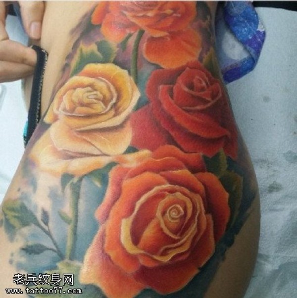 欧美玫瑰纹身 男生手臂上花朵纹身图片