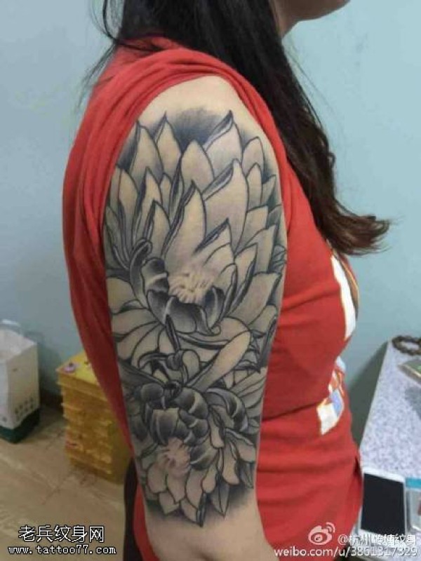 女生肩花纹身_15张女性双肩对称的肩花纹身图案作品图片