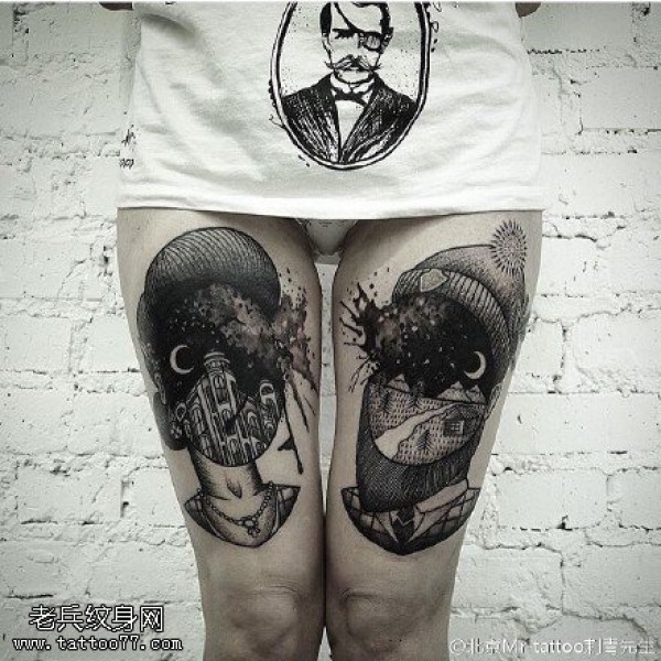 花腿纹身--一组大黑腿纹身图案作品欣赏