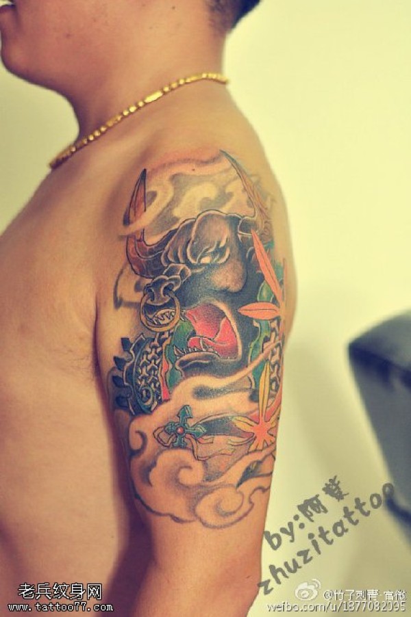 女生肩花纹身_15张女性双肩对称的肩花纹身图案作品图片
