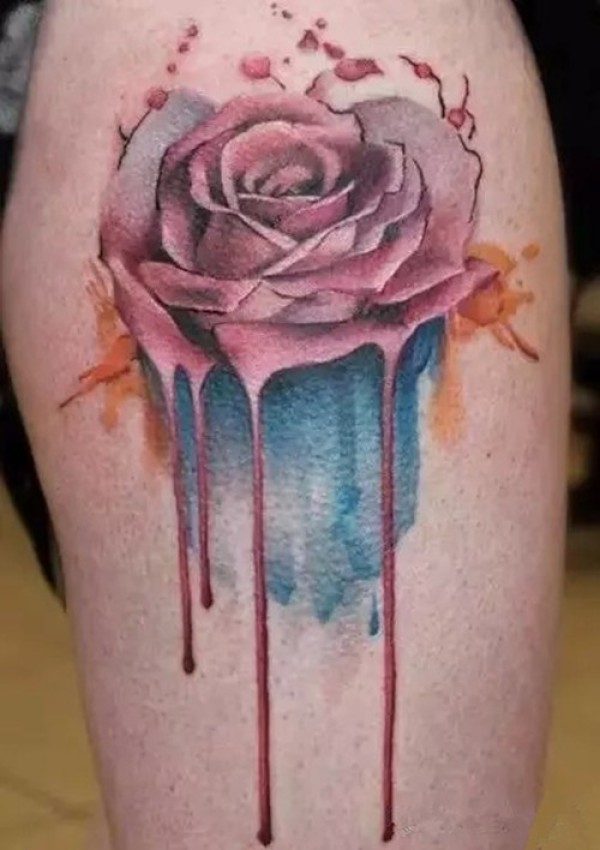 帅气的彩色花腿纹身水墨画纹身图案