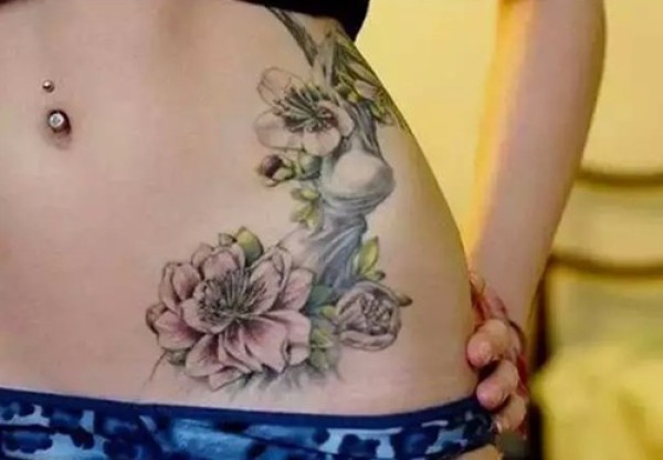 分享一款腰部时尚性感的蝶恋花纹身图案_腰部纹身图案大全_纹身图吧