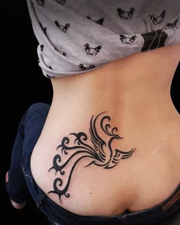 女生后腰纹身黑白灰风格抽象线条纹身图案