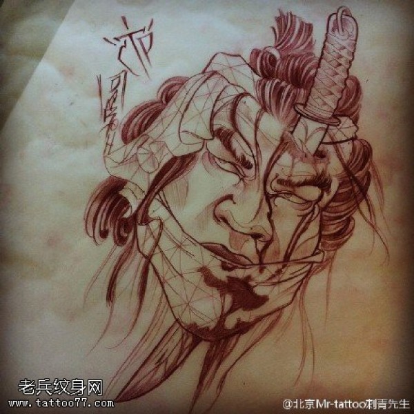 传统艺妓般若纹身图案手稿