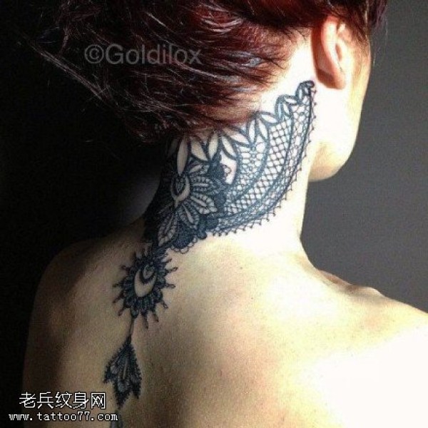 脖子上的蕾丝图腾纹身图案