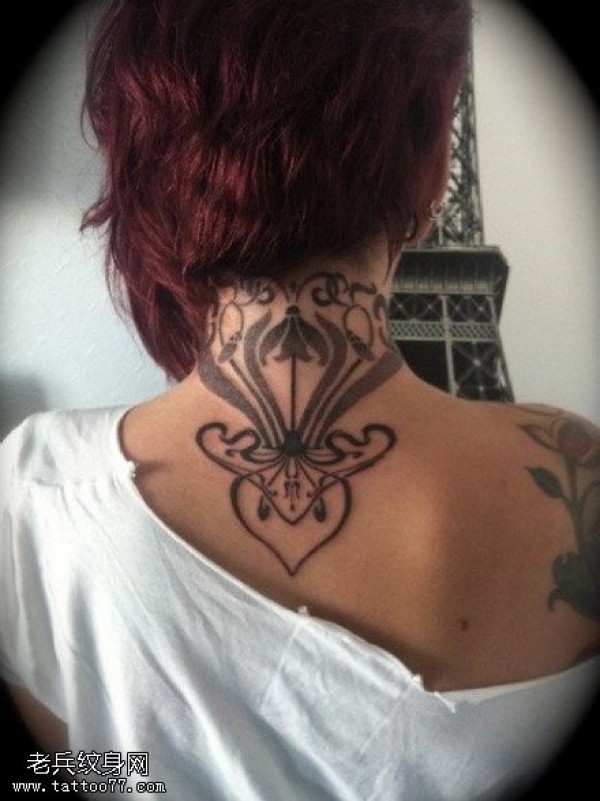 后颈部纹身小图--9张女生脖子后颈处的简约纹身图案