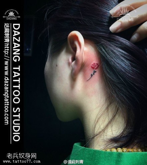 多款女生耳后黑色线条素描文艺小清新小图案纹身图案