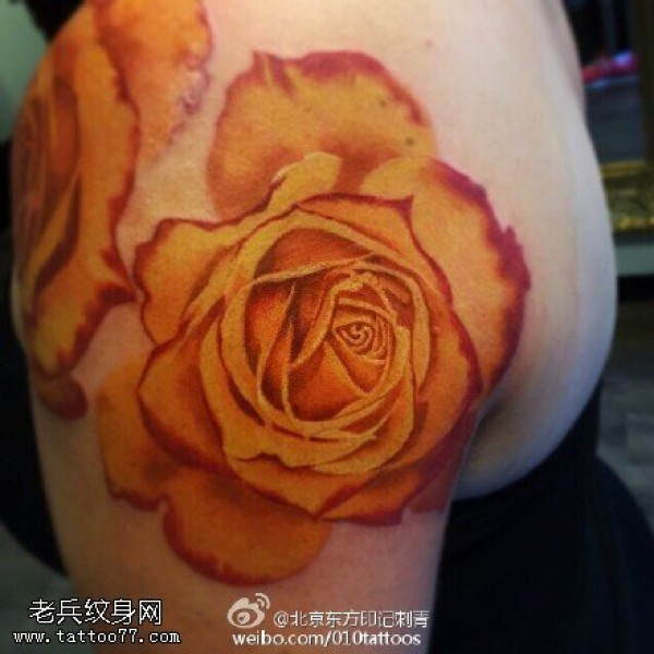 肩膀的黄玫瑰纹身图案