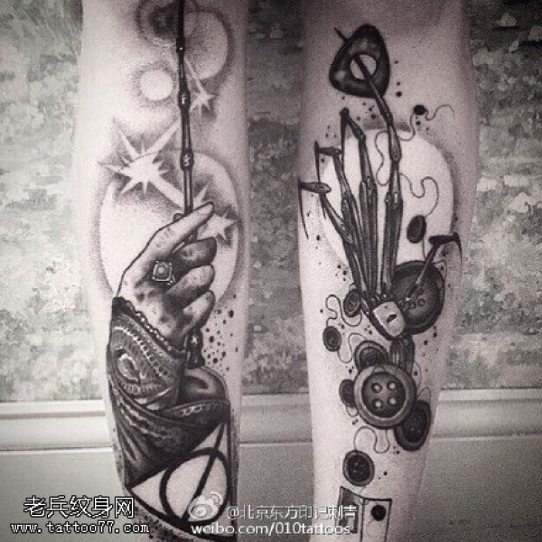 花腿纹身--一组大黑腿纹身图案作品欣赏