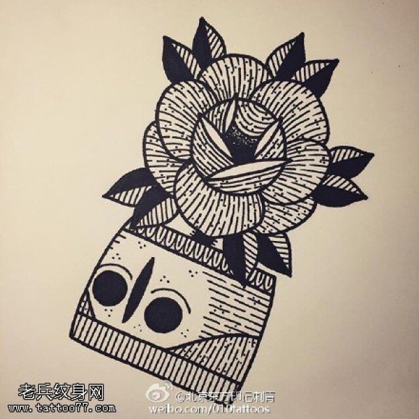手稿点刺花卉纹身图案