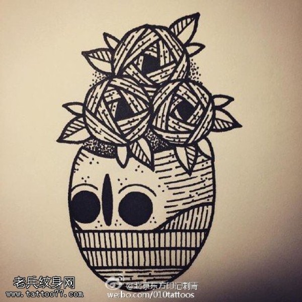 手稿点刺骷髅头纹身图案