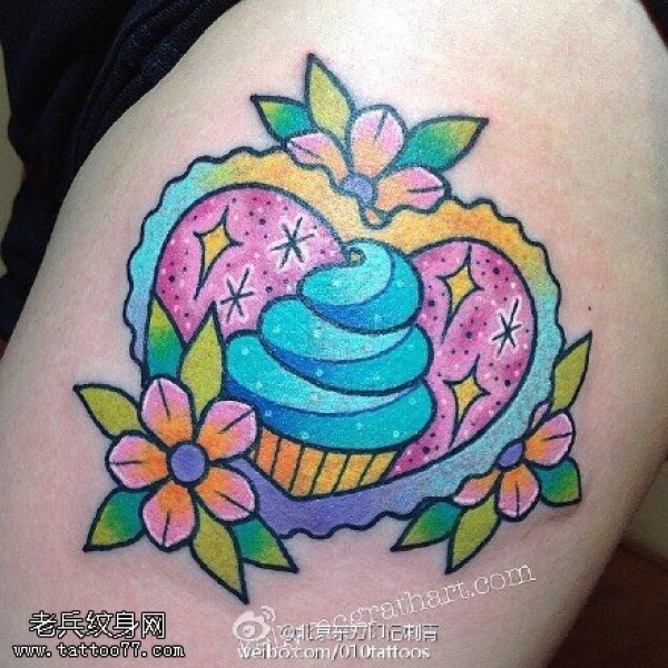 彩色的可爱卡通纹身小图美味的食物纹身图案