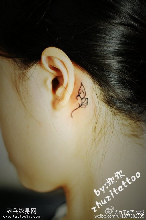 多款女生耳后黑色线条素描文艺小清新小图案纹身图案
