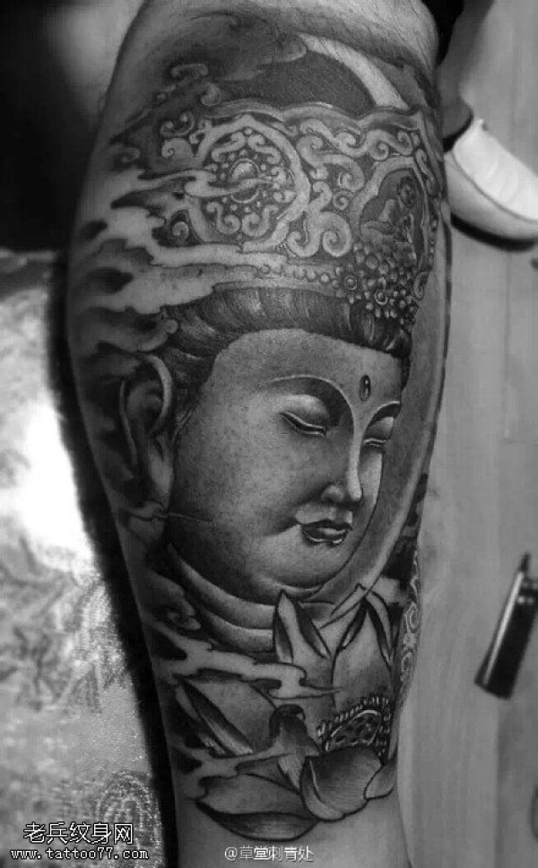腿上的弥勒佛纹身图案