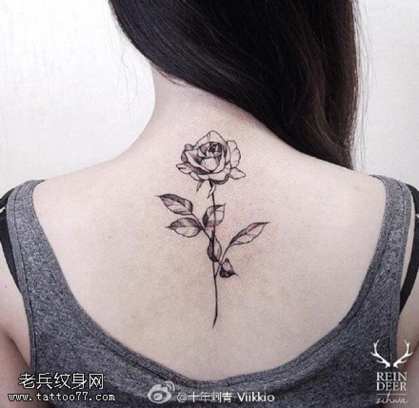 背部荆棘的玫瑰纹身图案