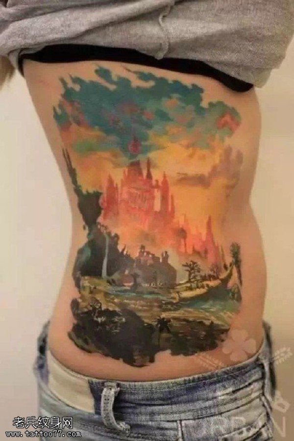 经典水彩一张好景象纹身图案
