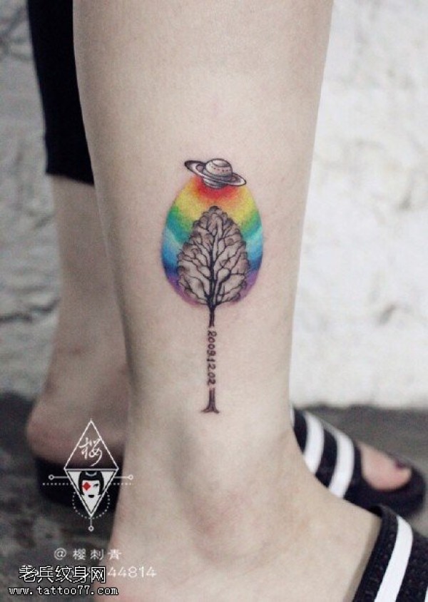 彩绘星系小树纹身图案