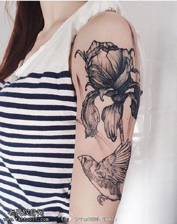 女生肩花纹身_15张女性双肩对称的肩花纹身图案作品图片