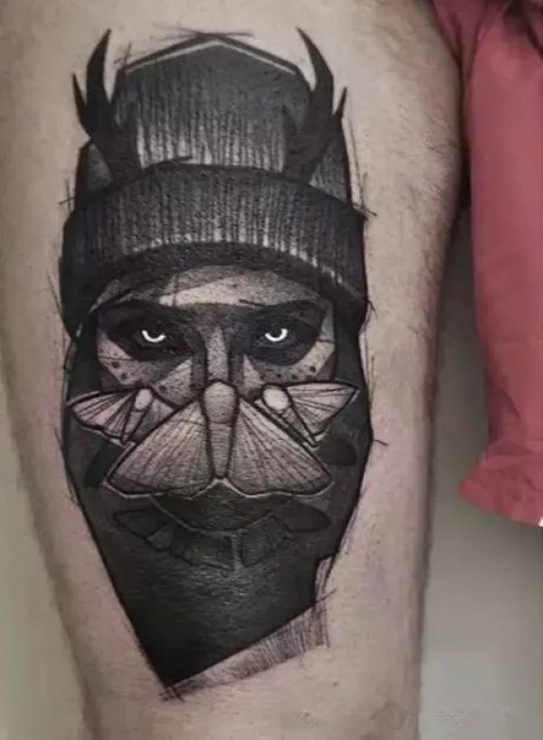 黑色系人物肖像纹身