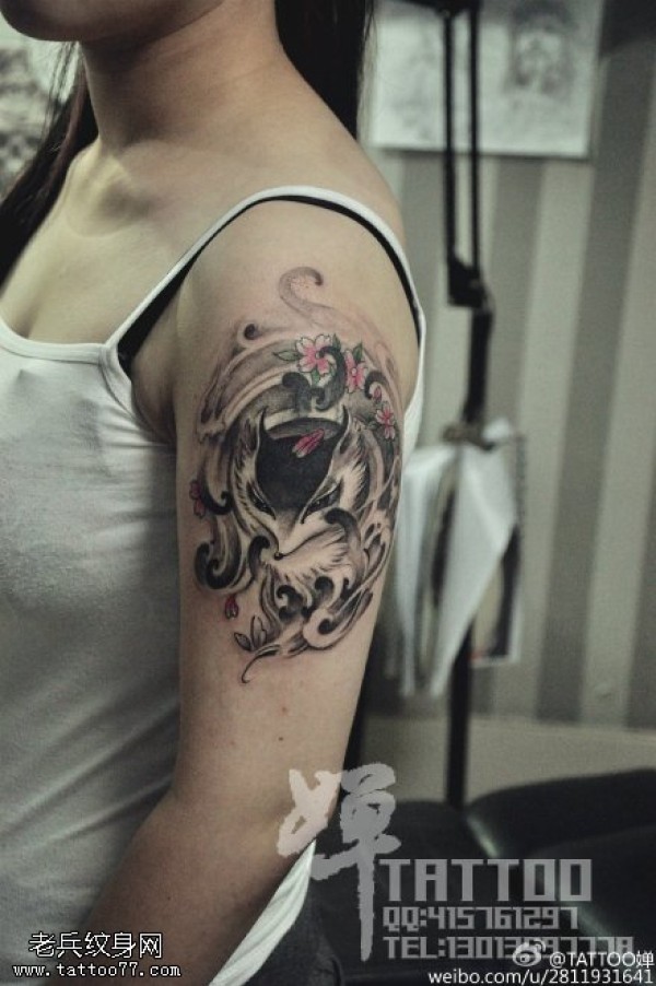 女生肩花纹身_15张女性双肩对称的肩花纹身图案作品图片