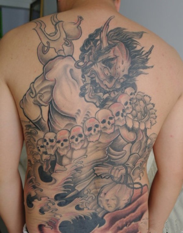 背部凶猛的夜叉纹身