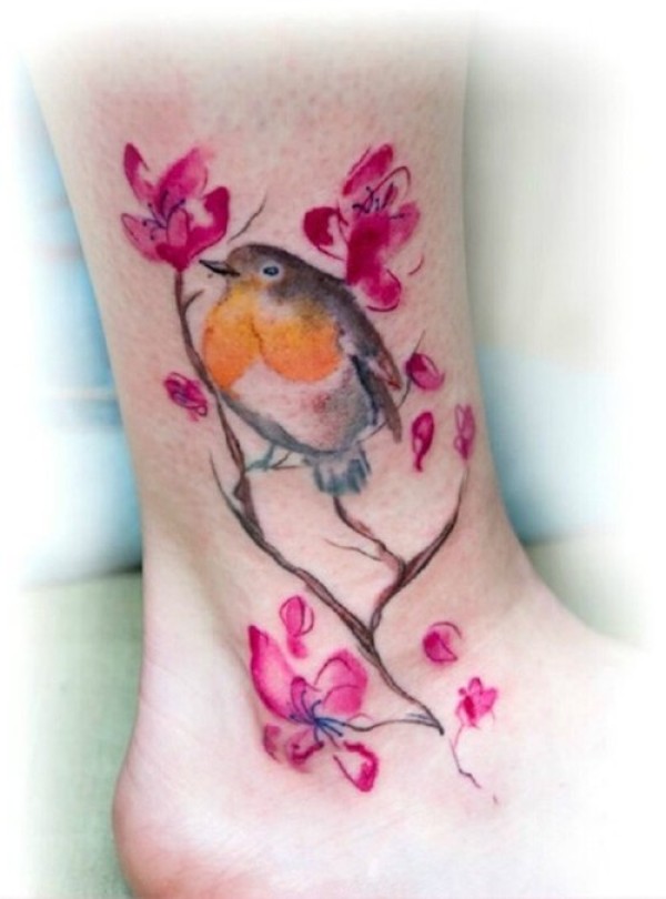 清新小桃花脚踝纹身_脚部纹身图案大全_纹身图吧