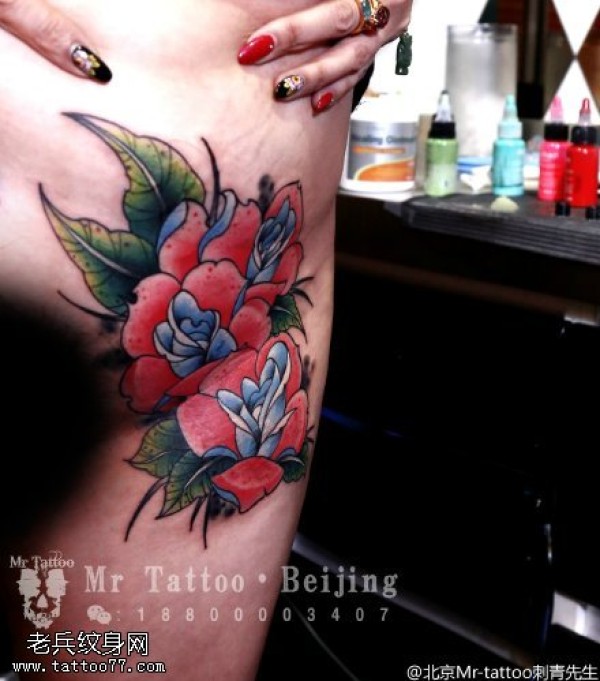 清新花朵腿部纹身图案图片_植物纹身图案大全_纹身图吧
