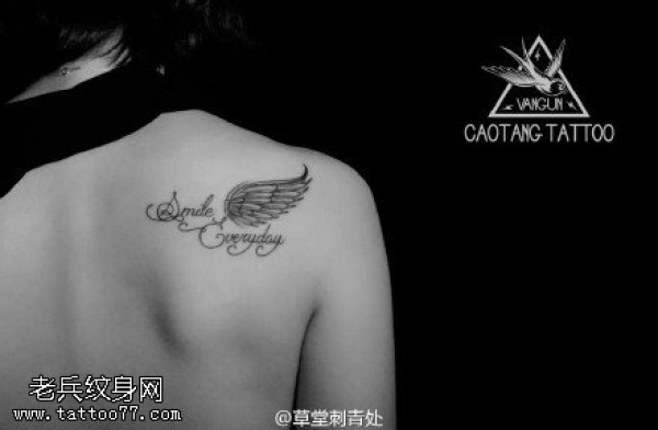 肩膀的字符翅膀纹身图案
