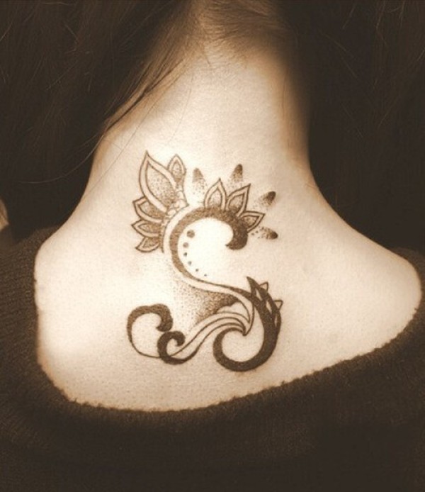 后颈部纹身小图--9张女生脖子后颈处的简约纹身图案