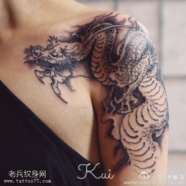 龙纹身手稿_一组老传统黑灰龙手稿纹身图案