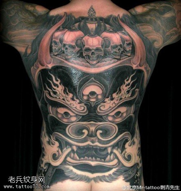 满背唐狮骷髅纹身图案