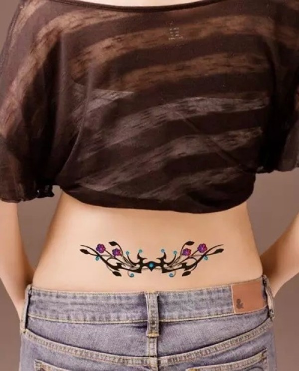 分享一款腰部时尚性感的蝶恋花纹身图案_腰部纹身图案大全_纹身图吧