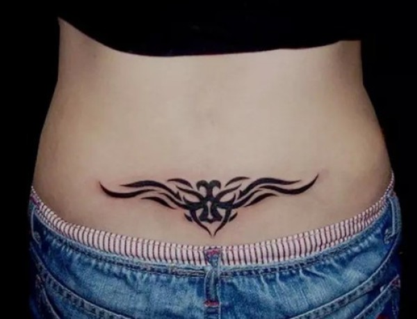 女生后腰纹身黑白灰风格抽象线条纹身图案