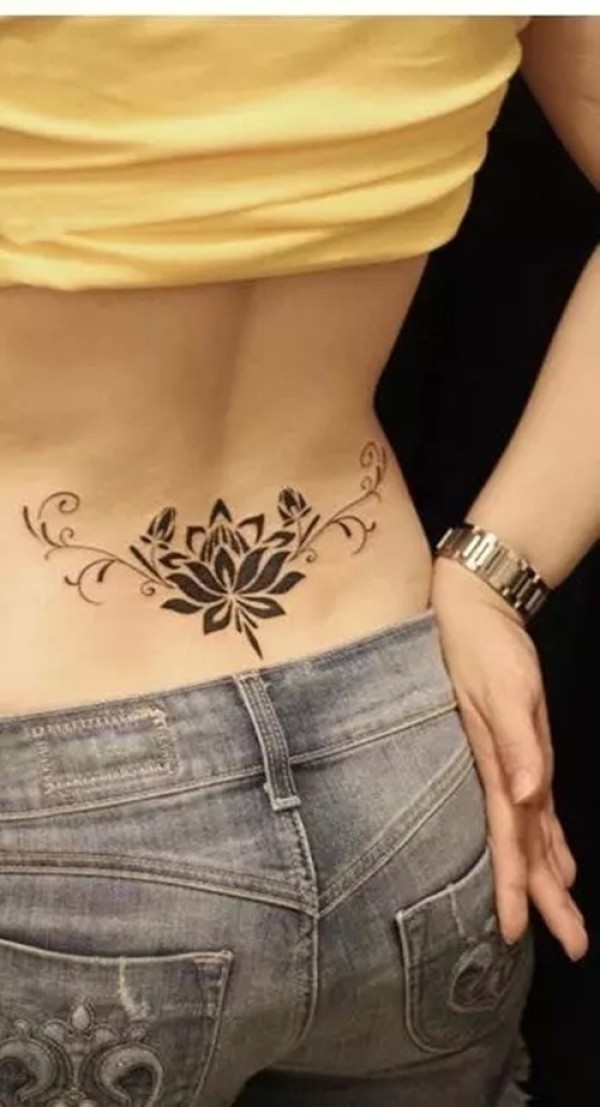 女性腰部莲花花纹刺青_腰部纹身图案大全_纹身图吧