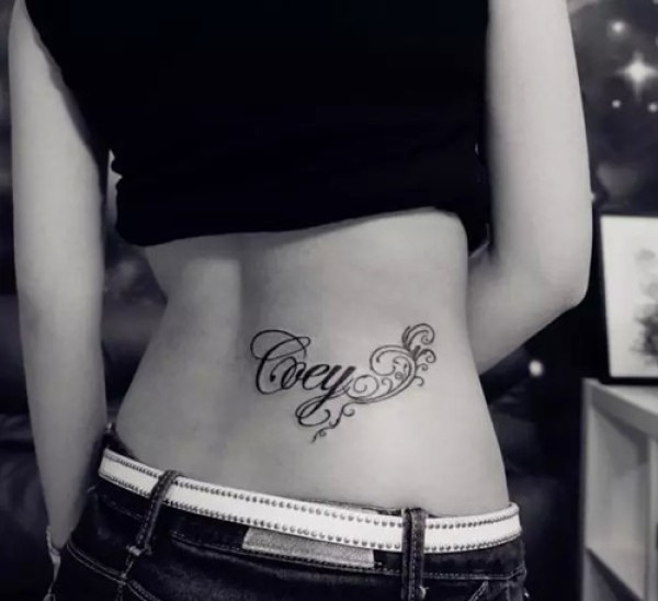 女生后腰纹身黑白灰风格抽象线条纹身图案