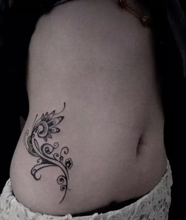 女性腰部莲花花纹刺青_腰部纹身图案大全_纹身图吧