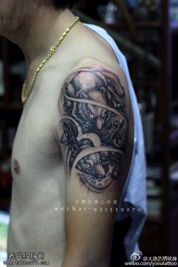 女生肩花纹身_15张女性双肩对称的肩花纹身图案作品图片