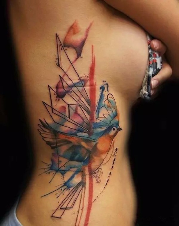 分享一款腰部时尚性感的蝶恋花纹身图案_腰部纹身图案大全_纹身图吧