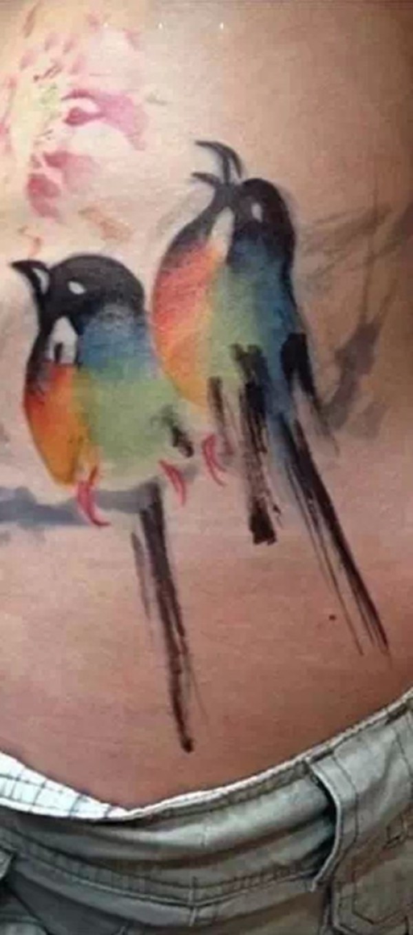 侧腰部各色小鸟纹身欣赏