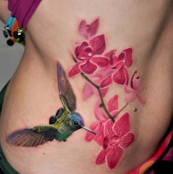 侧腰部各色小鸟纹身欣赏