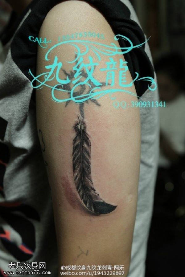 肩膀漂亮的羽毛纹身图案