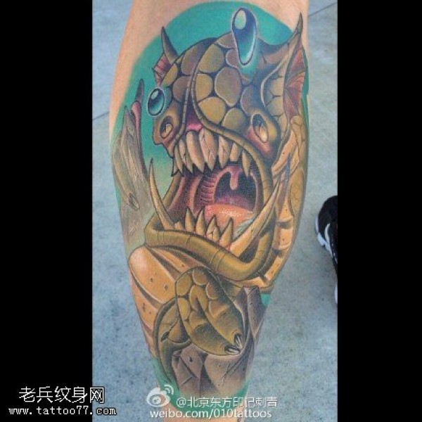 小腿上的怪物纹身图案