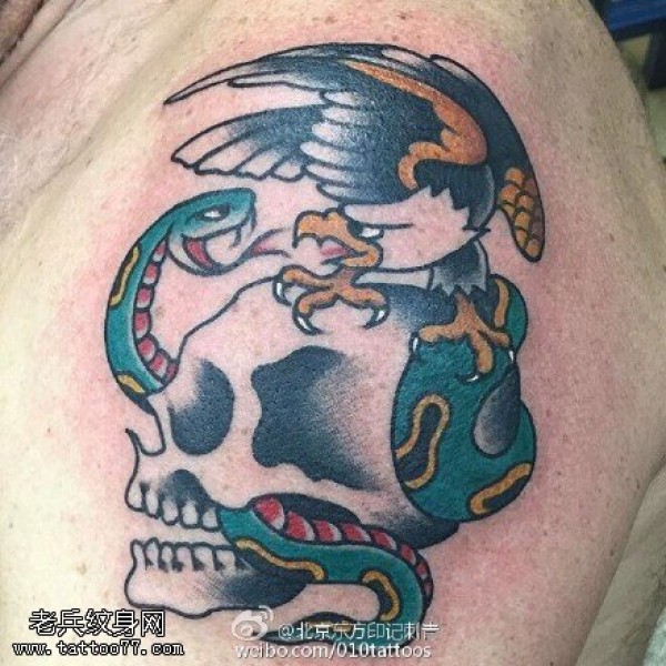 肩部蛇乌鸦骷髅纹身图案