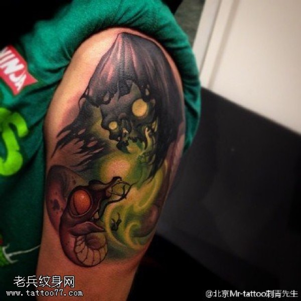 手臂一款彩色蘑菇纹身图案_臂部纹身图案大全_纹身图吧