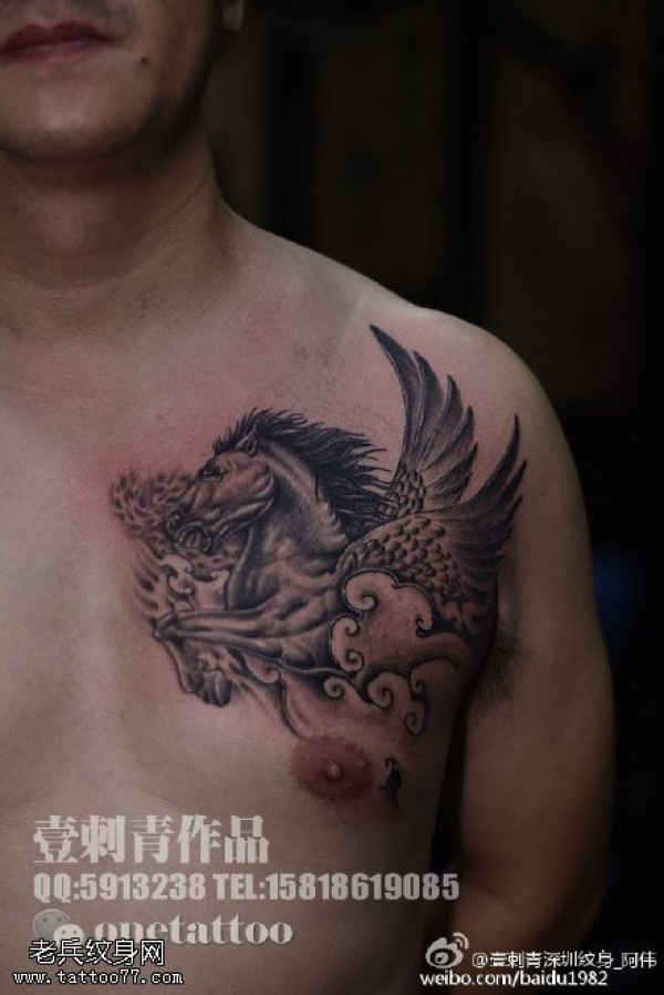 胸前的飞马纹身图案