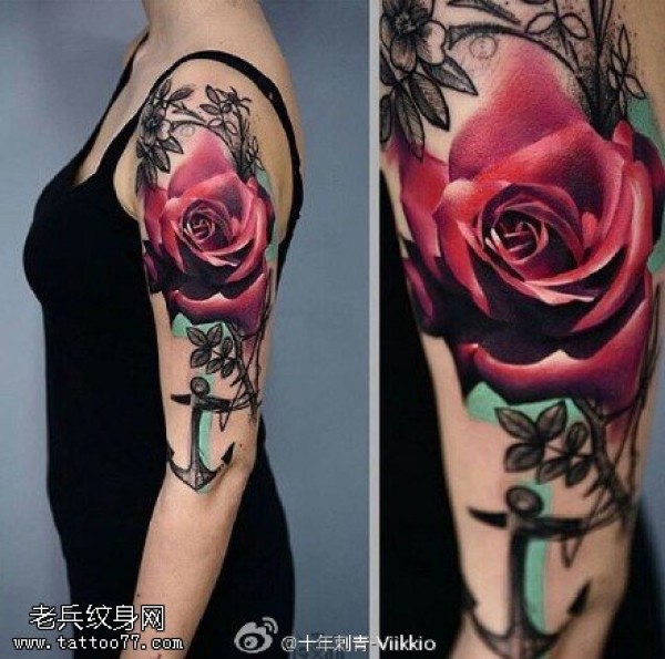 女生肩花纹身_15张女性双肩对称的肩花纹身图案作品图片